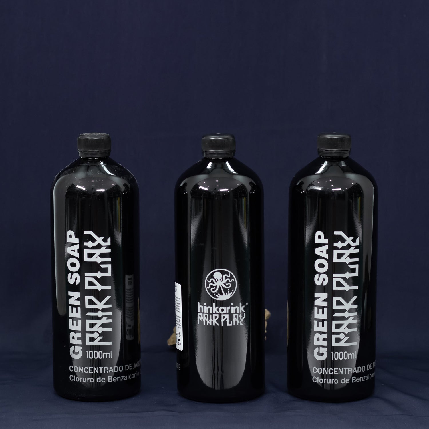 Jabón verde desinfectante, concentrado con áloe, excelente solución para el tatuador que trabaja con piseta.